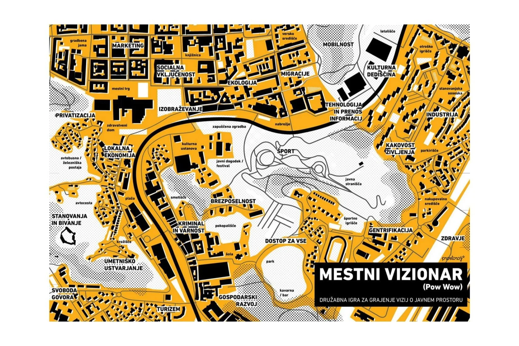 Authors of the game Pow Wow: DCALK & les Chiens de l'Enfer (FR) and Cie Motus Terrae (GR) • The Slovenian version of the game is based on the pilot game Pow Wow, which was developed in 2016 by DCALK & les Chiens de l’Enfer (FR) and Motus Terrae (GR) in cooperation with the residents of the Greek city of Elefsina. • Author of the Slovenian version: Zala Velkavrh • Supporter: Ministry of the Environment and Spatial Planning • 2017
